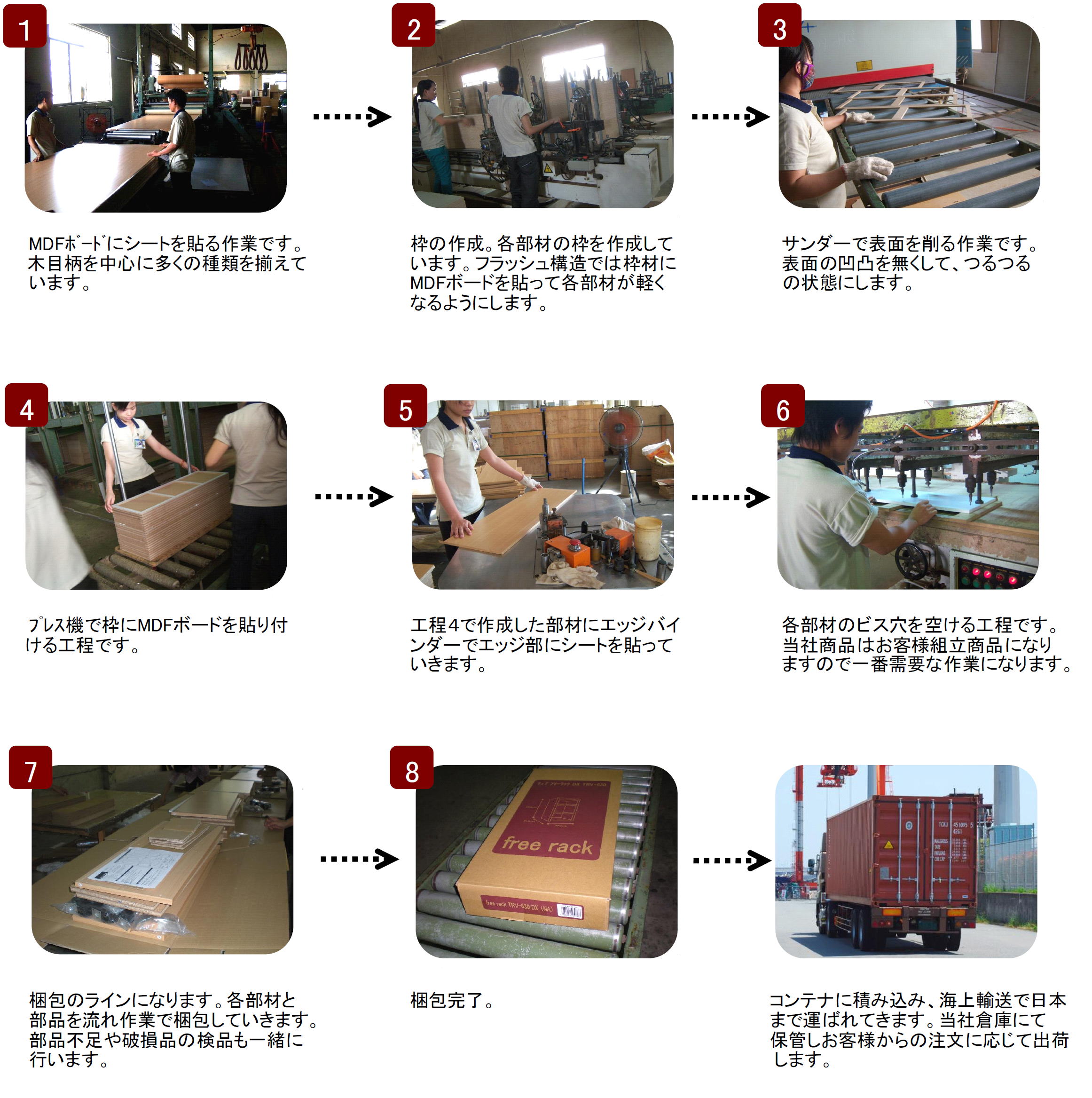 ベトナムで生産している商品が出来るまでの工程を下記にて順を追って説明します。